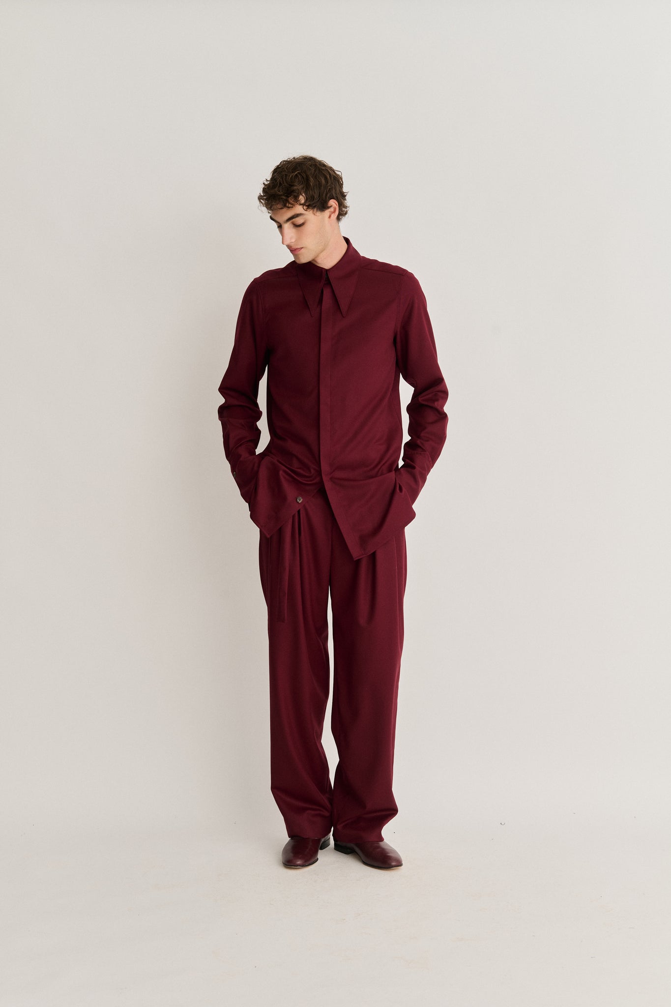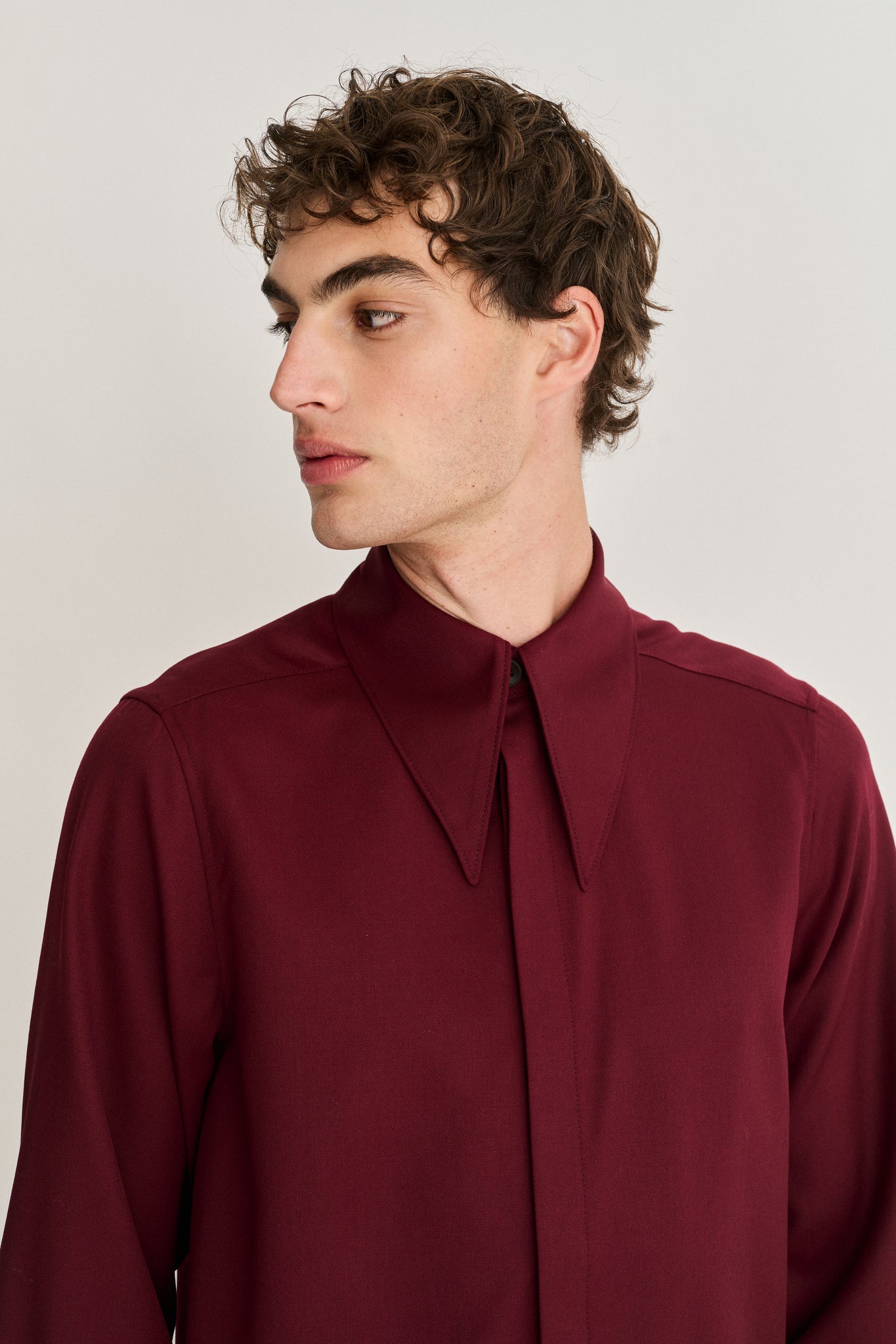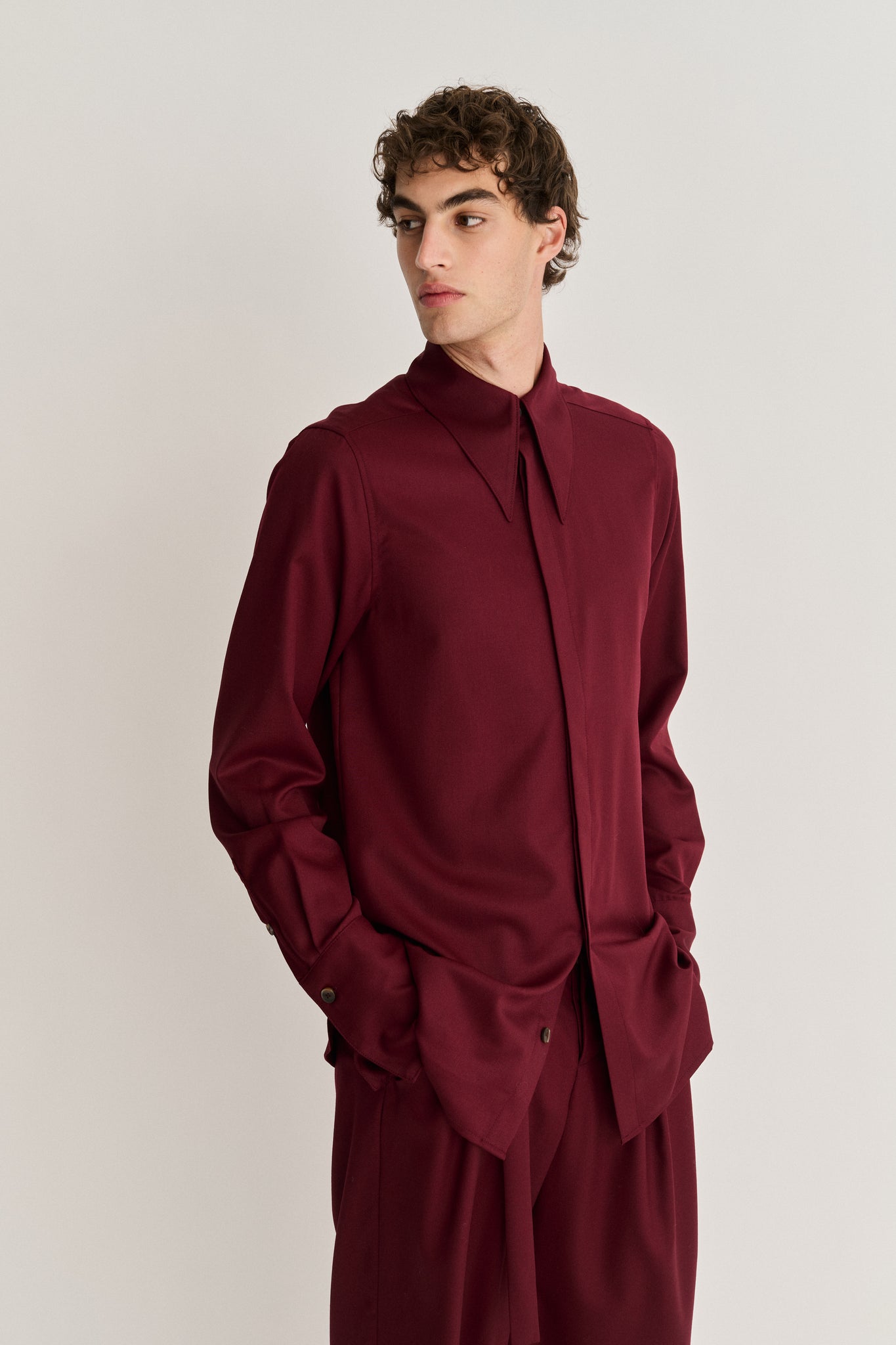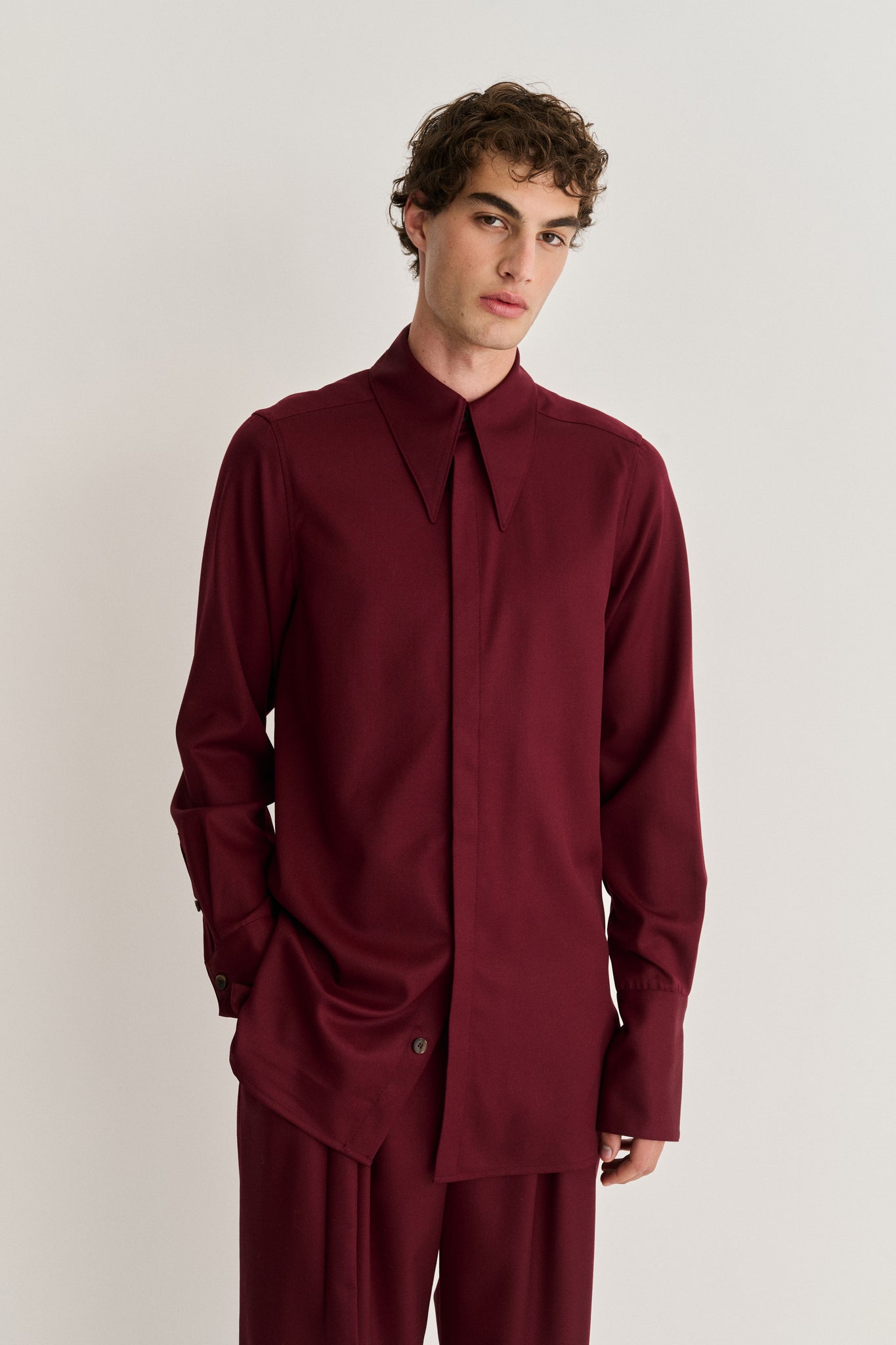 Pointed Collar Long Line Shirt