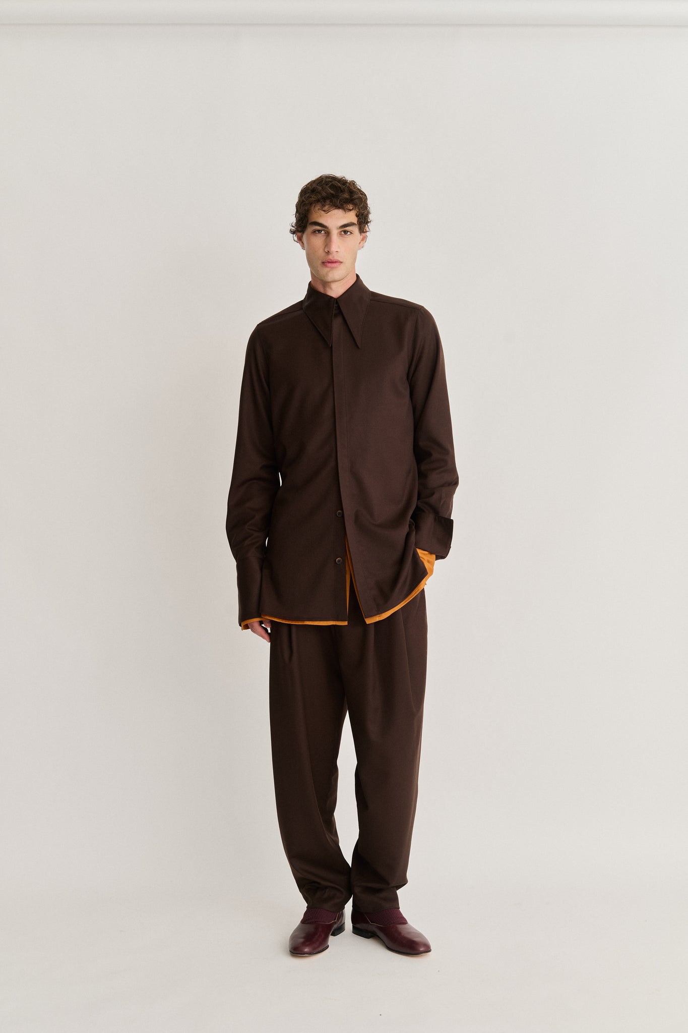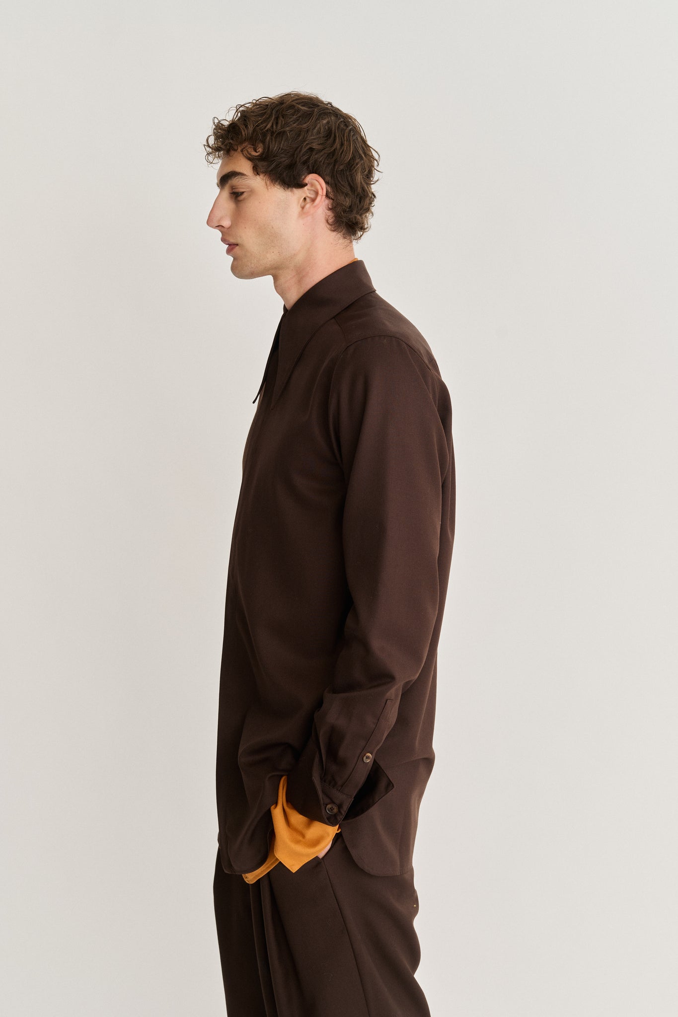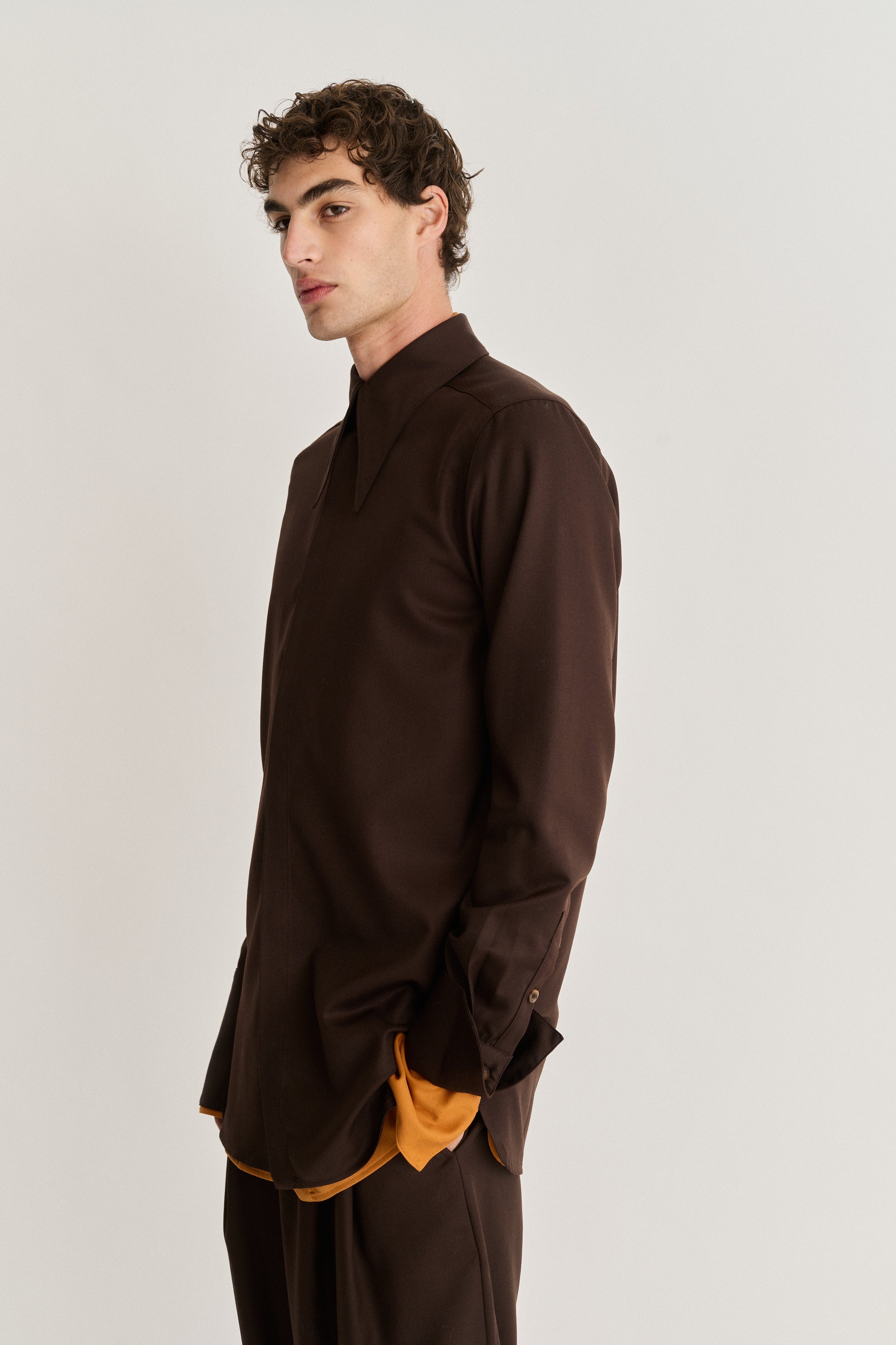 Pointed Collar Long Line Shirt
